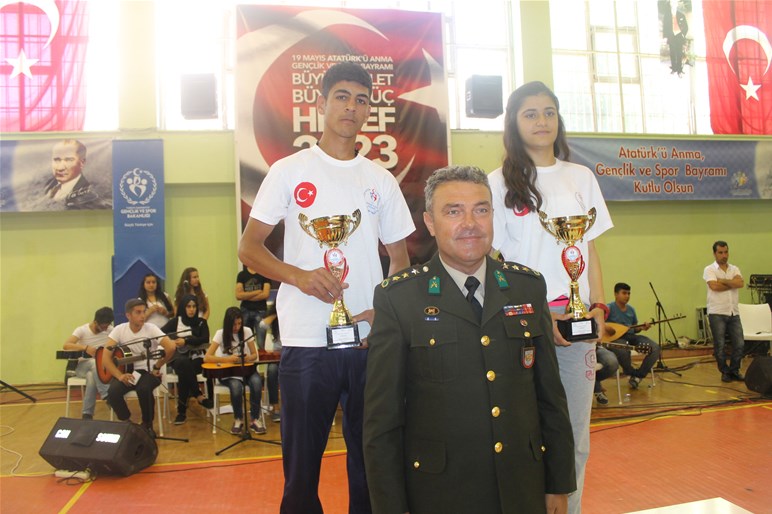 Törene katılan Mardin Valisi Ömer Faruk KOÇAK, 70. Mekanize Piyade Tugay Komutanı Tuğgeneral Salih KIRHAN ve Mardin Büyükşehir Belediye Başkan vekili Mahmut YILMAZ, çeşitli spor dallarından düzenlenen yarışmalarda dereceye giren öğrencilere ödüllerinin verdi.