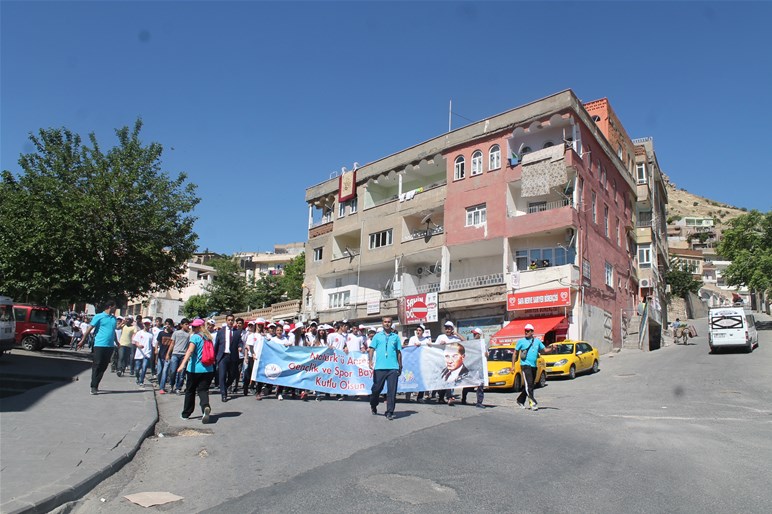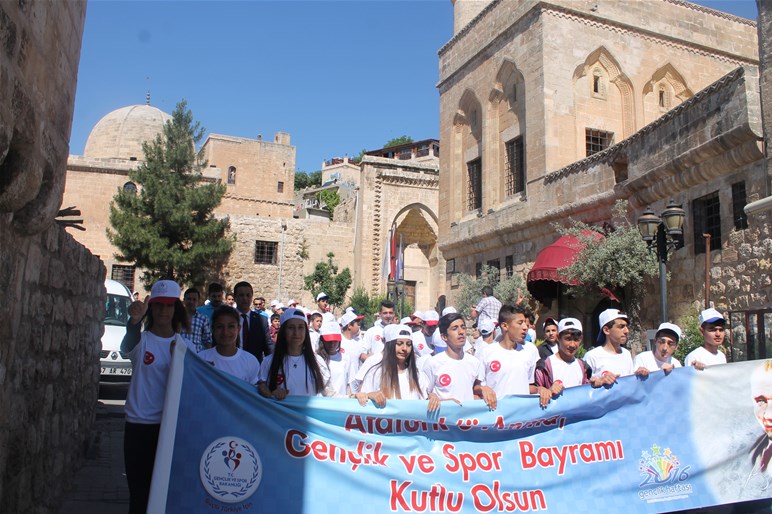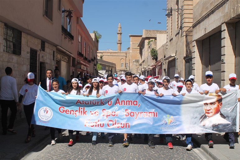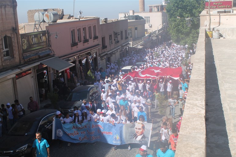 19 Mayıs Gençlik ve Spor Bayramına Atatürk Anıtı'na çelenklerin sunulmasıyla başlandı. Saygı duruşu ve İstiklal Marşı'nın okunmasının ardından Mardin Gençlik Spor İl Müdürlüğünün düzenlediği yürüyüşte, Gençler büyük Türk Bayrağını taşıyarak "şehitler ölmez vatan bölünmez", "vatan sana canım feda" ne mutlu Türküm diyene" sloganları ile Atatürk Kapalı spor salonuna kadar yürüdü.